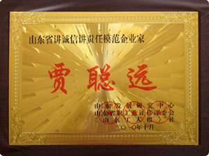 2011年5月份,公司總經理賈聰遠榮獲山東省講誠信、講責任模范企業(yè)家稱號并在“山東工人報”和“時代風采雜志”作文章介紹。